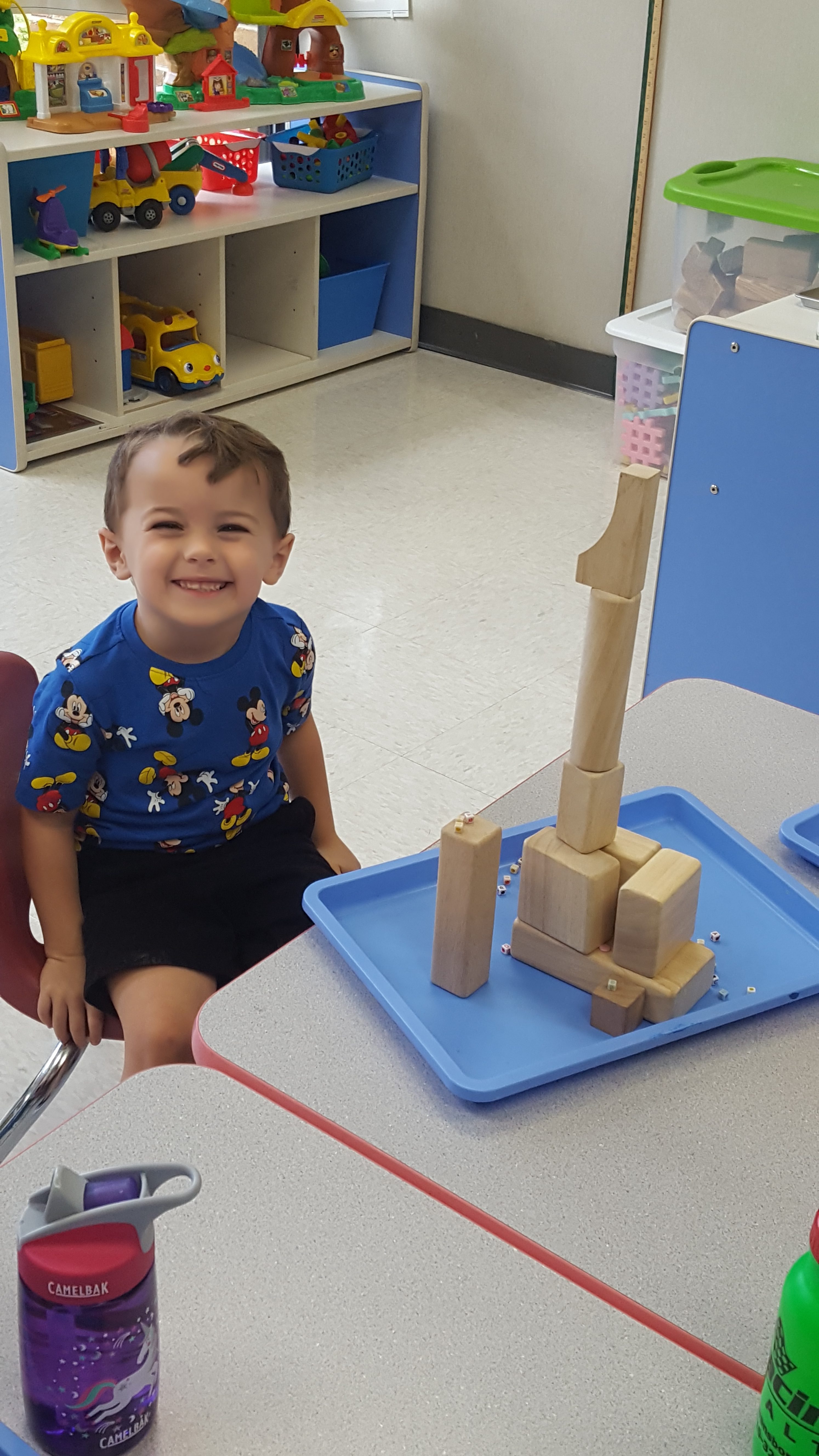 For our STEM activity we made coconut trees out of blocks and put bead letters on them to go along with Chicka Chicka Boom Boom