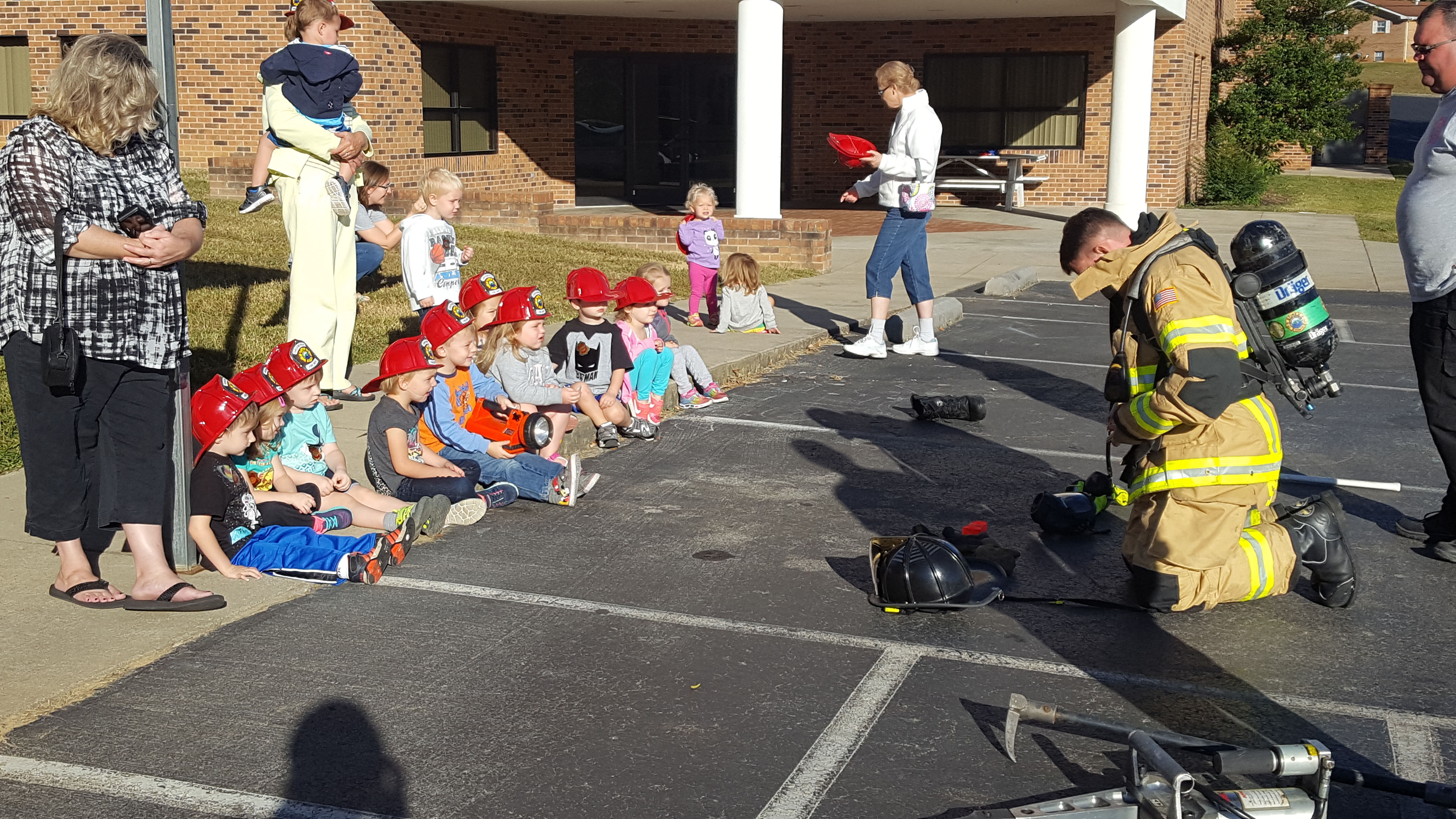 20171004_091315 ← Previous Next → Seeing what the fireman looks like in his equipment so they won’t be scared if they see him in a fire Share